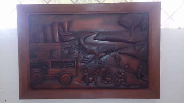 cuadro tallado en madera. “paseo de olla”