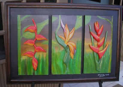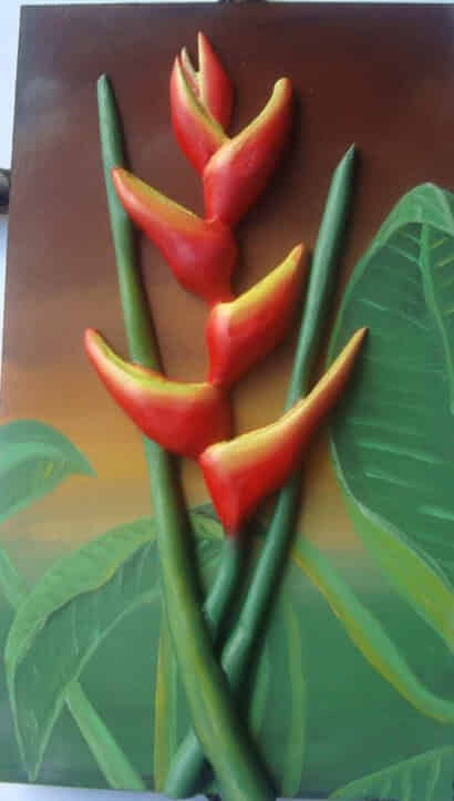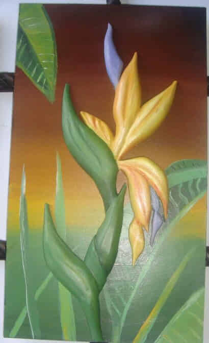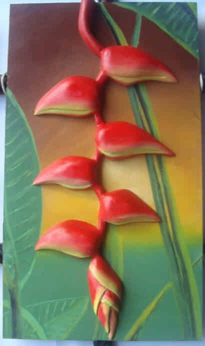 heliconias, talla en madera